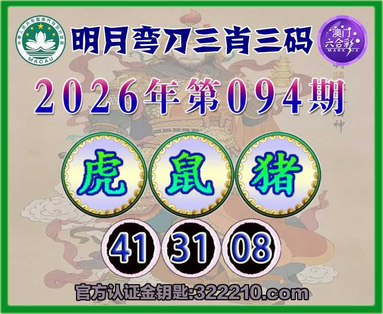 094期:〖明月弯刀〗 👛三肖三码👛【鼠猪】【41.31.08】开:虎17