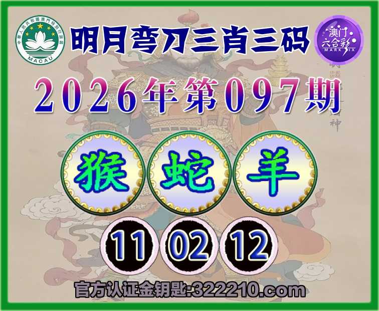 097期:〖明月弯刀〗 👛三肖三码👛【蛇羊】【11.02.12】开:猴11