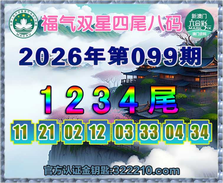 099期:【福气双星】 🏵️四尾八码🏵️【1234尾】开:12