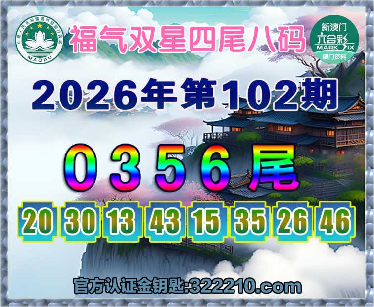 102期:【福气双星】 🏵️四尾八码🏵️【0356尾】开:20