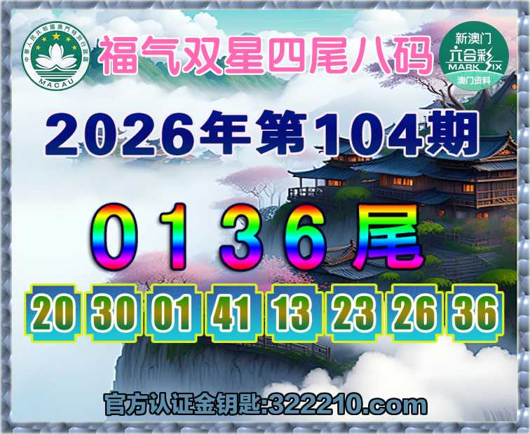 104期:【福气双星】 🏵️四尾八码🏵️【0136尾】开:01