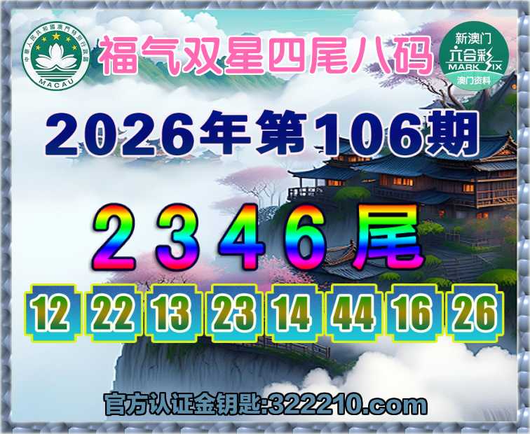 106期:【福气双星】 🏵️四尾八码🏵️【2346尾】开:22