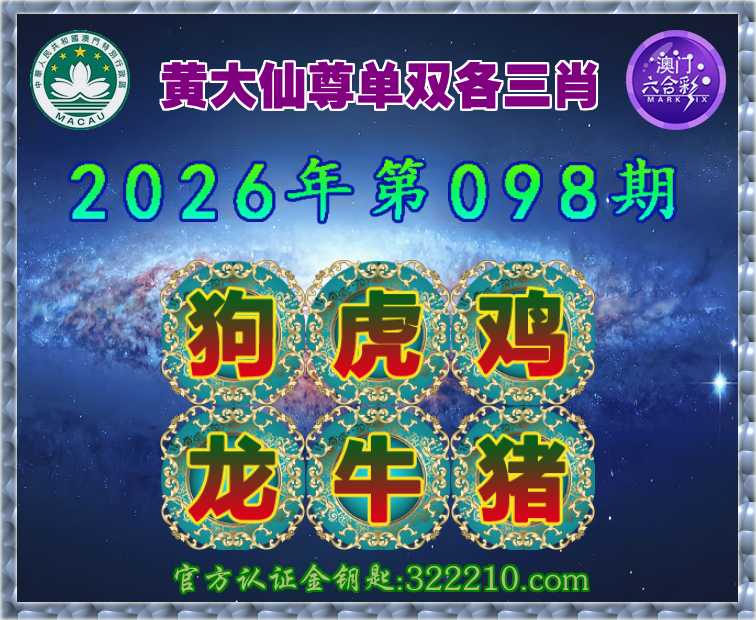 098期:【黄大仙尊】 🌷单双各三肖🌷【狗..鸡.龙.牛.猪】开:虎17
