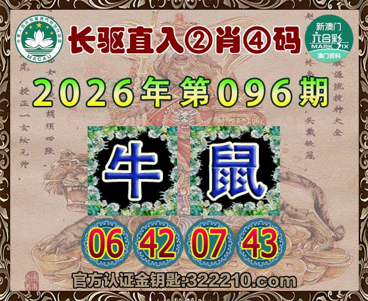 096期:『长驱直入』 🍟②肖④码🍟【牛】【06.42.07.43】开:鼠43