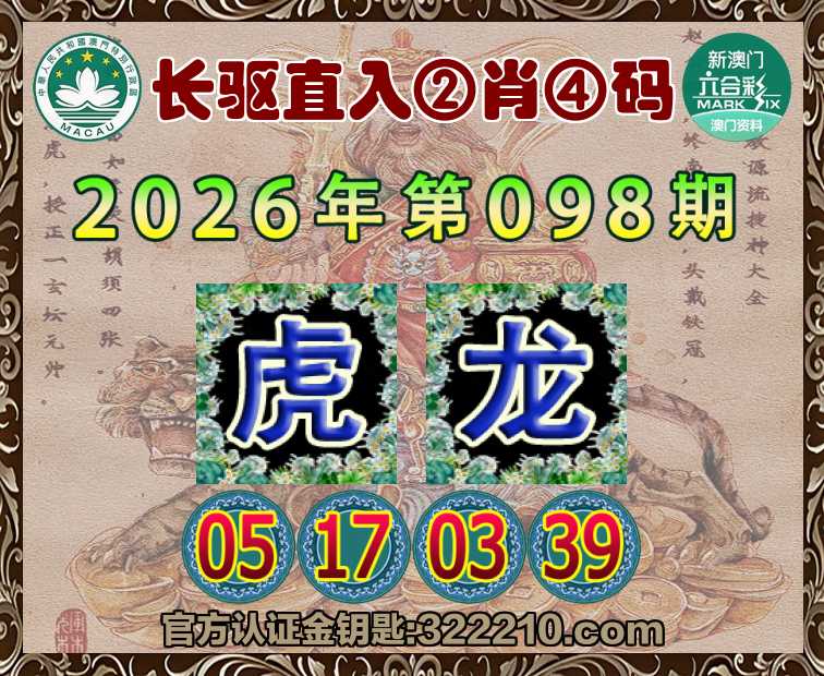 098期:『长驱直入』 🍟②肖④码🍟【龙】【05.17.03.39】开:虎17