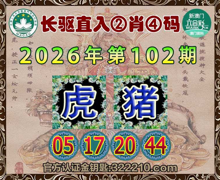 102期:『长驱直入』 🍟②肖④码🍟【虎】【05.17.20.44】开:猪20