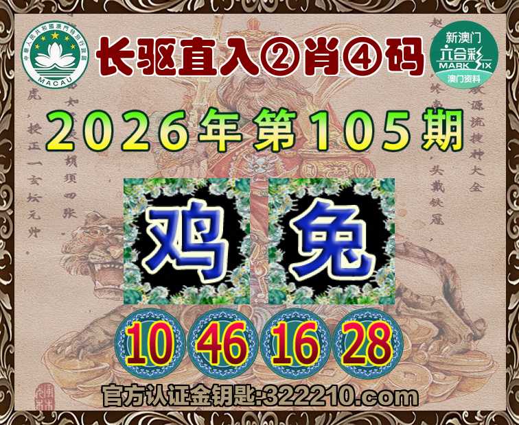 105期:『长驱直入』 🍟②肖④码🍟【鸡】【10.46.16.28】开:兔28