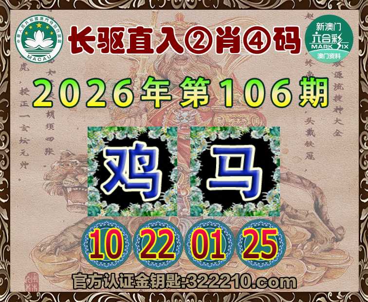 106期:『长驱直入』 🍟②肖④码🍟【马】【10.22.01.25】开:鸡22