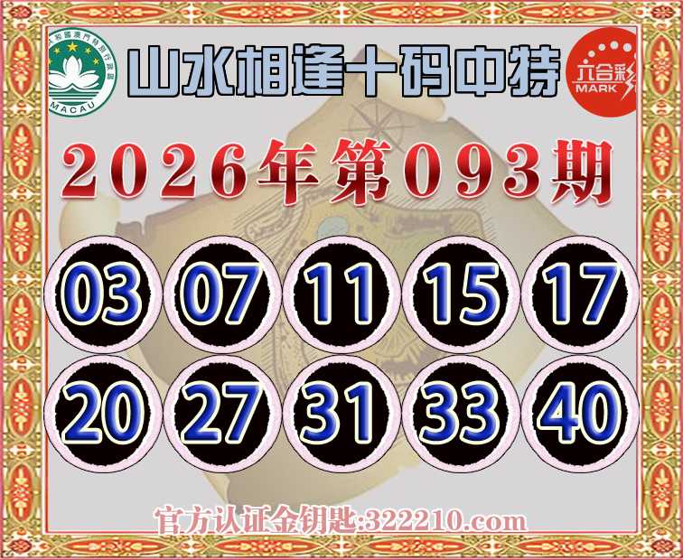 093期: 山水相逢 ♠️十码中特♠️开:40