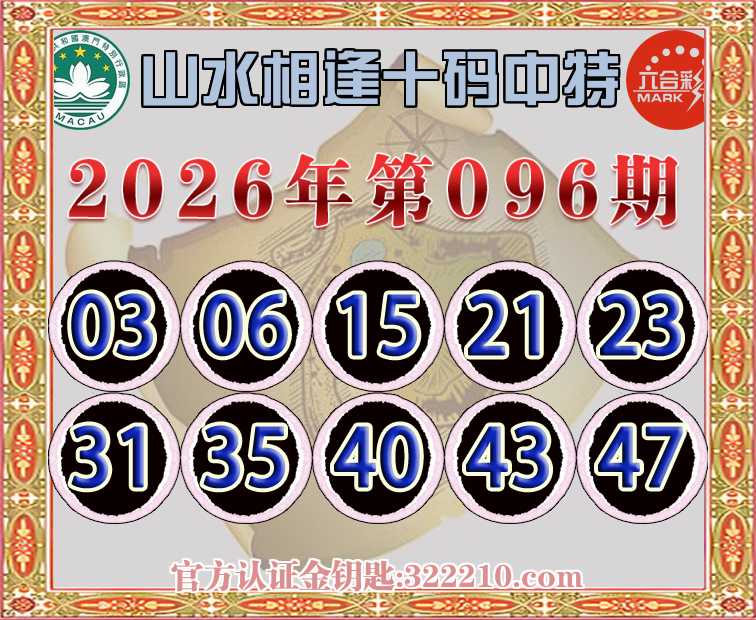 096期: 山水相逢 ♠️十码中特♠️开:43