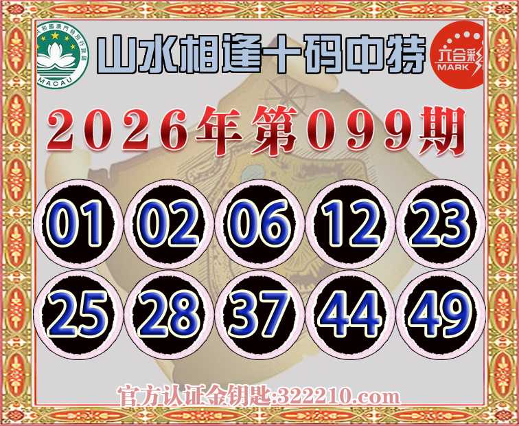 099期: 山水相逢 ♠️十码中特♠️开:12