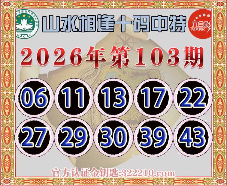 103期: 山水相逢 ♠️十码中特♠️开:06