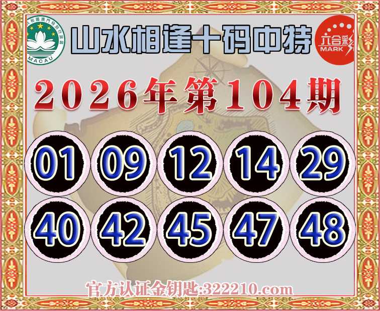 104期: 山水相逢 ♠️十码中特♠️开:01