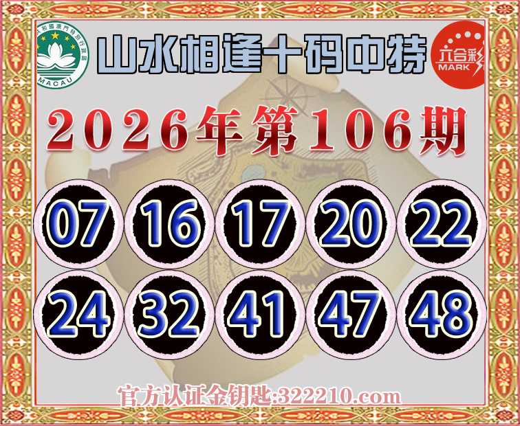 106期: 山水相逢 ♠️十码中特♠️开:22