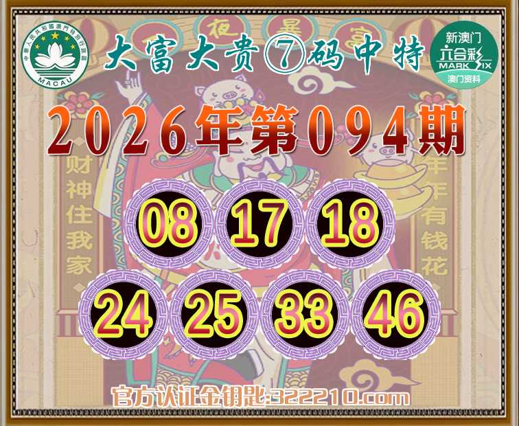 094期:《大富大贵》 🤩⑦码中特🤩【08.17.18.24.25.33.46】开:17