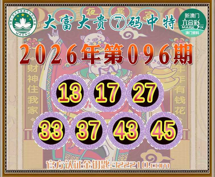 096期:《大富大贵》 🤩⑦码中特🤩【13.17.27.33.37.43.45】开:43