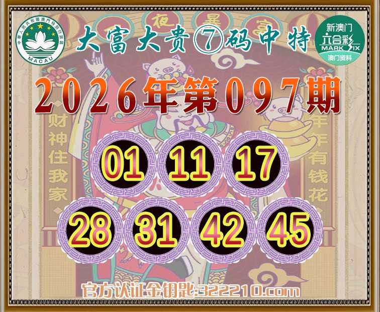 097期:《大富大贵》 🤩⑦码中特🤩【01.11.17.28.31.42.45】开:11