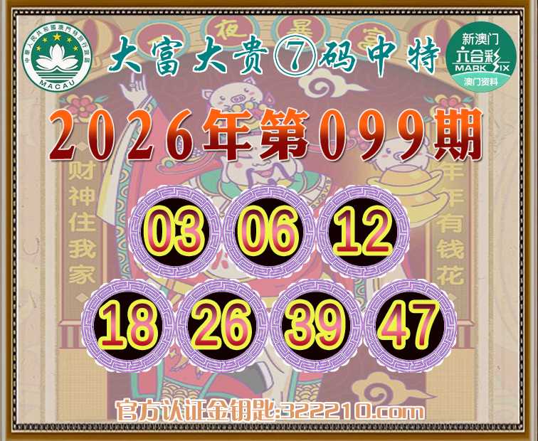 099期:《大富大贵》 🤩⑦码中特🤩【03.06.12.18.26.39.47】开:12