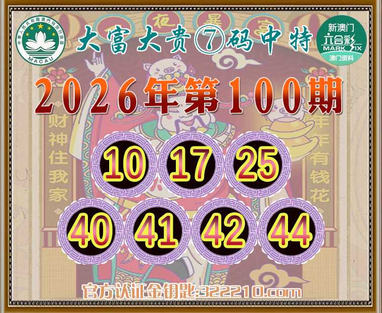 100期:《大富大贵》 🤩⑦码中特🤩【10.17.25.40.41.42.44】开:33