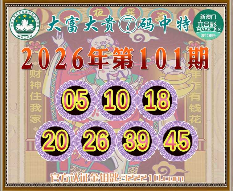 101期:《大富大贵》 🤩⑦码中特🤩【05.10.18.20.26.39.45】开:39