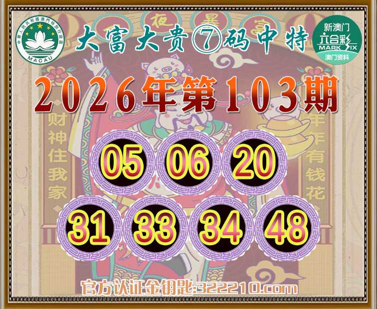 103期:《大富大贵》 🤩⑦码中特🤩【05.06.20.31.33.34.48】开:06