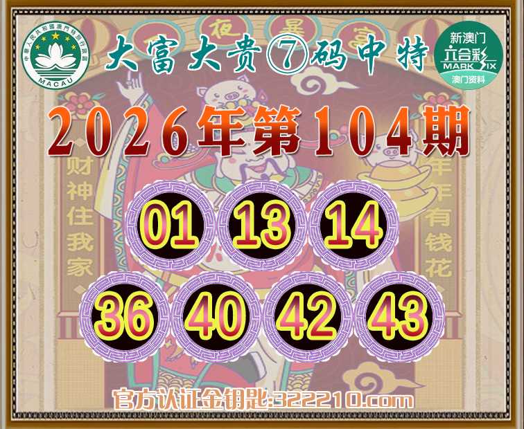104期:《大富大贵》 🤩⑦码中特🤩【01.13.14.36.40.42.43】开:01