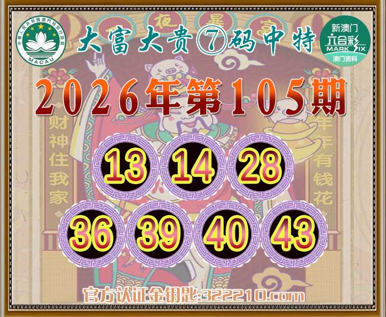 105期:《大富大贵》 🤩⑦码中特🤩【13.14.28.36.39.40.43】开:28