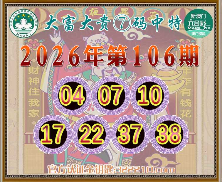 106期:《大富大贵》 🤩⑦码中特🤩【04.07.10.17.22.37.38】开:22