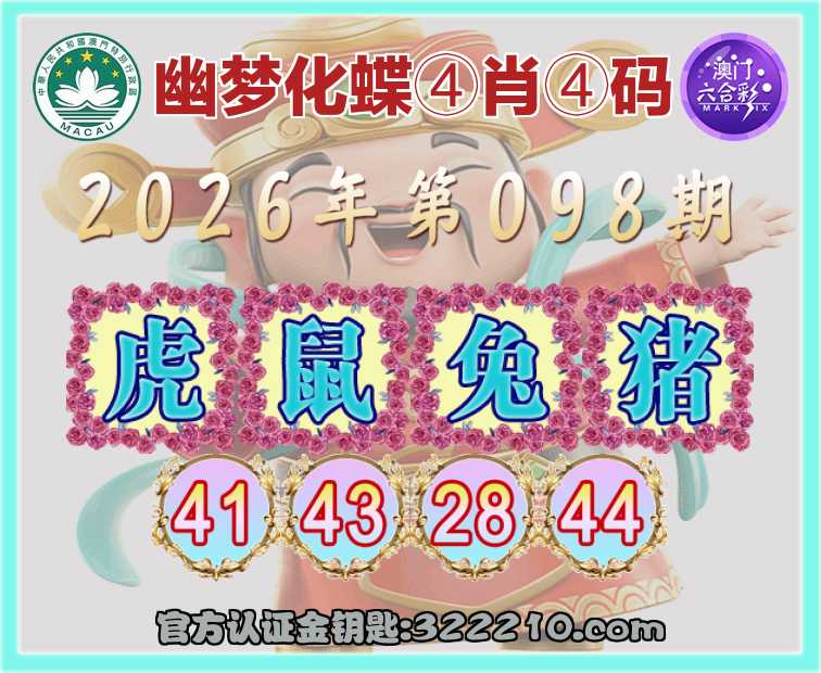 098期:〖幽梦化蝶〗 🪢④肖④码🪢【鼠兔猪】【41.43.28.44】开:虎17