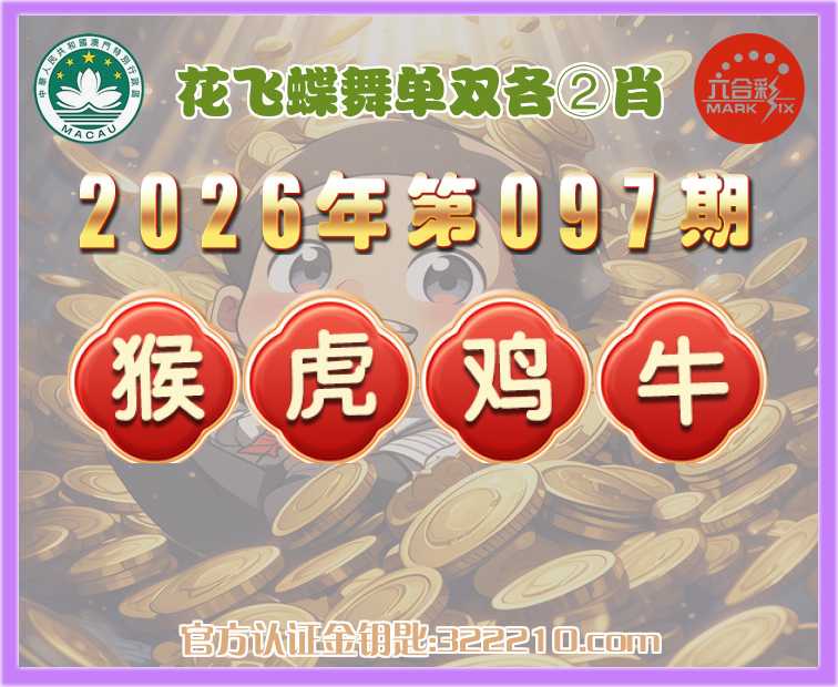 097期:《花飞蝶舞》 ♦️单双各②肖♦️【.虎.鸡.牛】开:猴11
