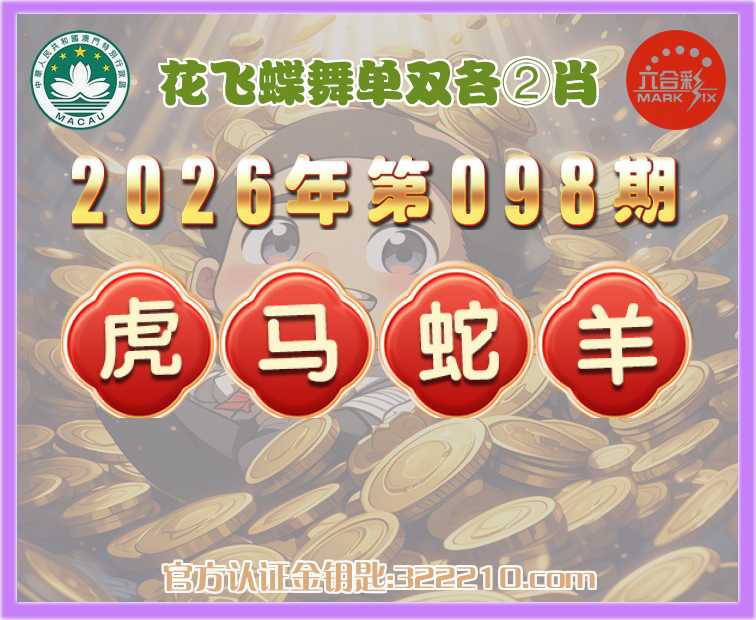 098期:《花飞蝶舞》 ♦️单双各②肖♦️【.马.蛇.羊】开:虎17