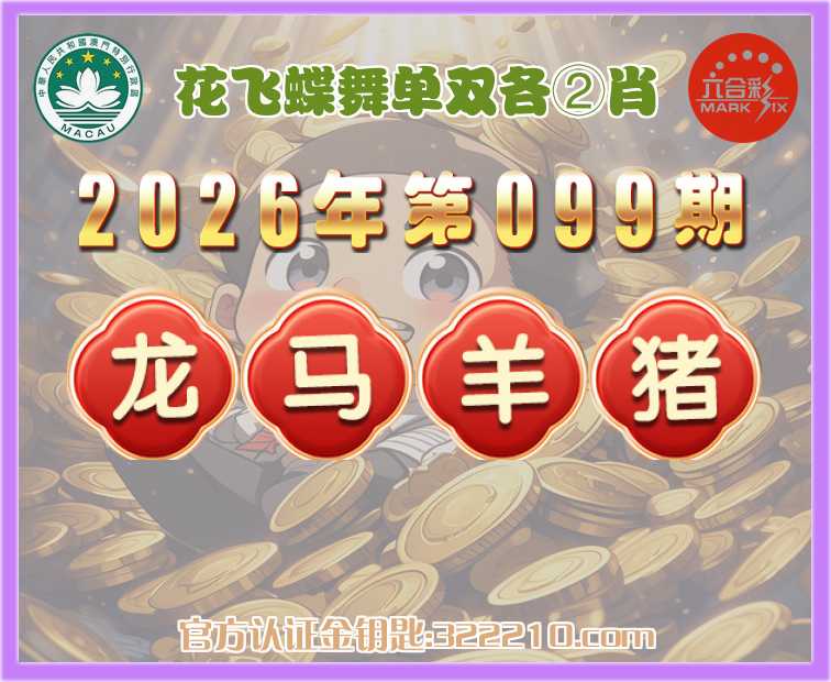 099期:《花飞蝶舞》 ♦️单双各②肖♦️【龙.马..猪】开:羊12