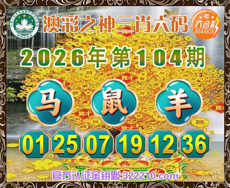 104期:《澳彩之神》 🍃三肖六码🍃【鼠羊】开:马01