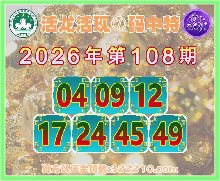 108期:【活龙活现】 🥬⑦码中特🥬【04.09.12.17.24.45.49】开:45