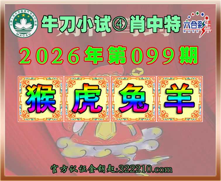 099期:『牛刀小试』 🐓④肖中特🐓【猴.虎.兔.】开:羊12