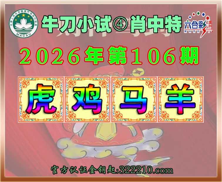 106期:『牛刀小试』 🐓④肖中特🐓【虎..马.羊】开:鸡22