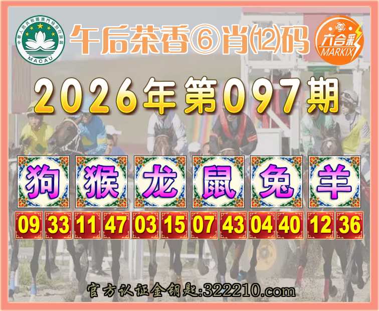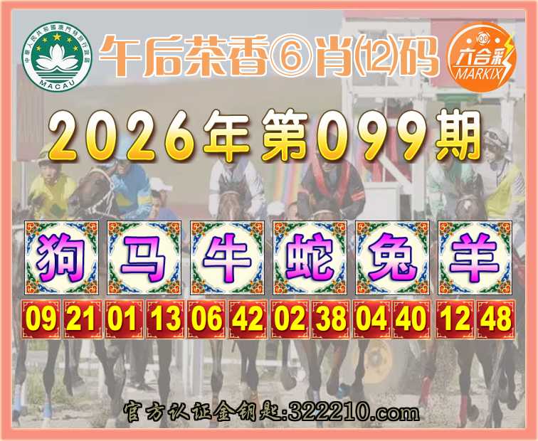 099期: 👑『午后茶香』 👑⑥肖⑿码👑【狗马牛蛇兔】开:羊12
