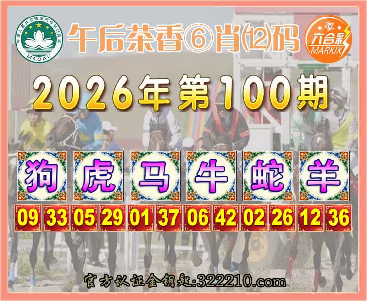 100期: 👑『午后茶香』 👑⑥肖⑿码👑【虎马牛蛇羊】开:狗33