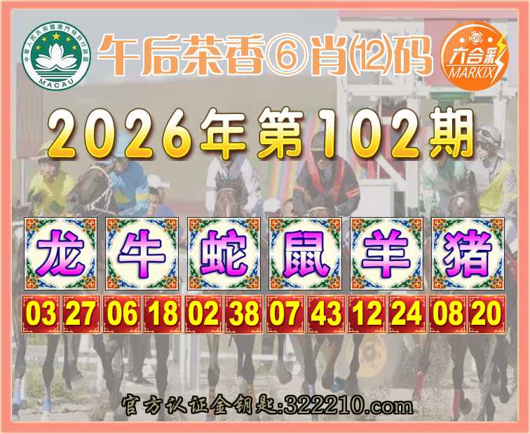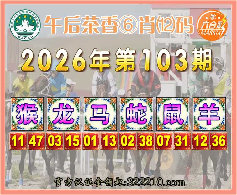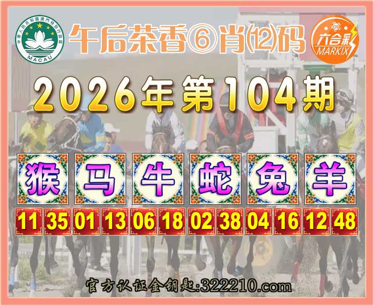 104期: 👑『午后茶香』 👑⑥肖⑿码👑【猴牛蛇兔羊】开:马01