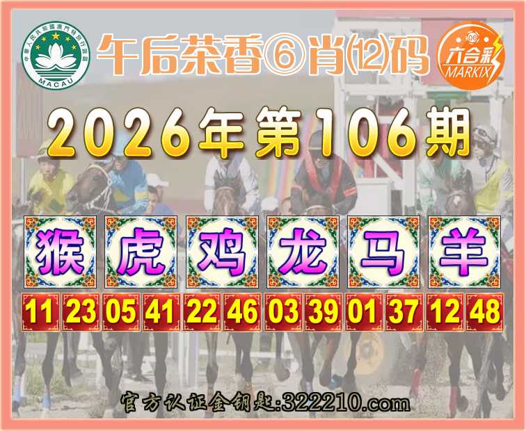 106期: 👑『午后茶香』 👑⑥肖⑿码👑【猴虎龙马羊】开:鸡22