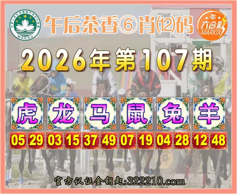 107期: 👑『午后茶香』 👑⑥肖⑿码👑【虎龙鼠兔羊】开:马49