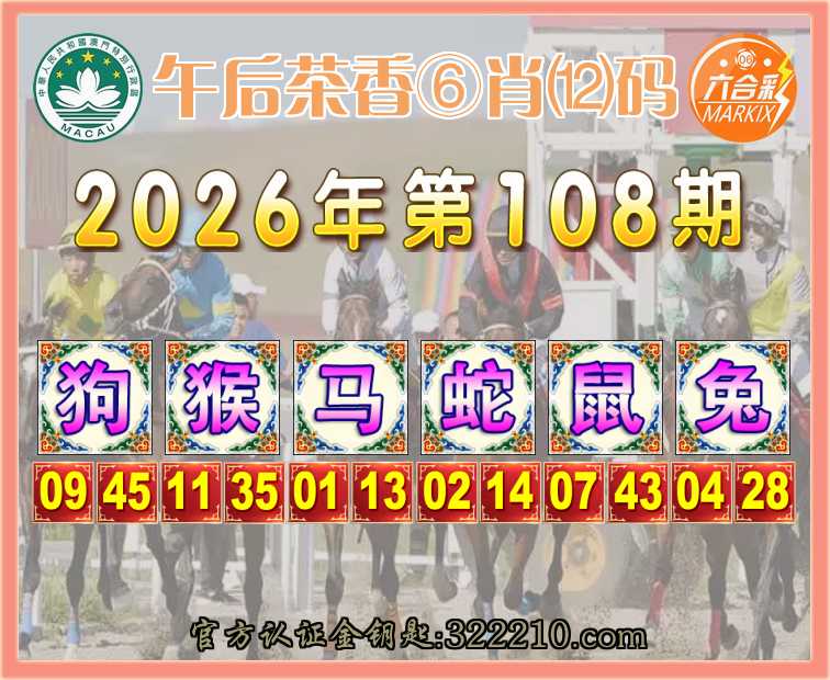 108期: 👑『午后茶香』 👑⑥肖⑿码👑【猴马蛇鼠兔】开:狗45