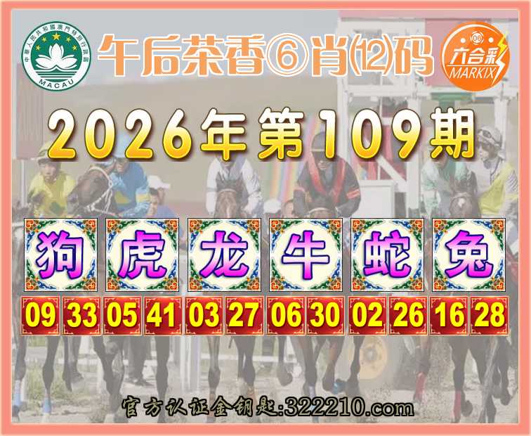 109期: 👑『午后茶香』 👑⑥肖⑿码👑【狗虎龙牛蛇】开:兔16