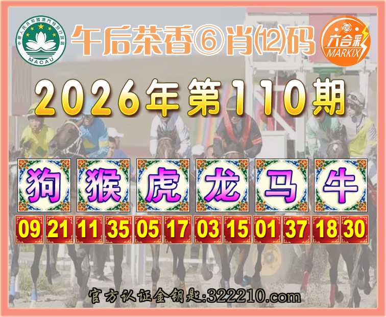 110期: 👑『午后茶香』 👑⑥肖⑿码👑【狗猴虎龙马】开:牛30