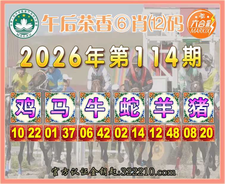 114期: 👑『午后茶香』 👑⑥肖⑿码👑【鸡马牛蛇羊猪】开:00准