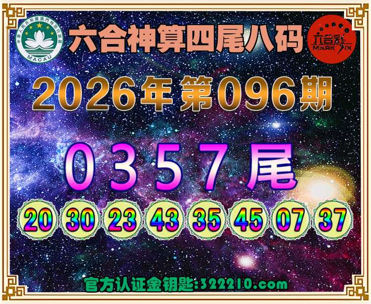 096期:〖六合神算〗 👉四尾八码👉【0357尾】开:43