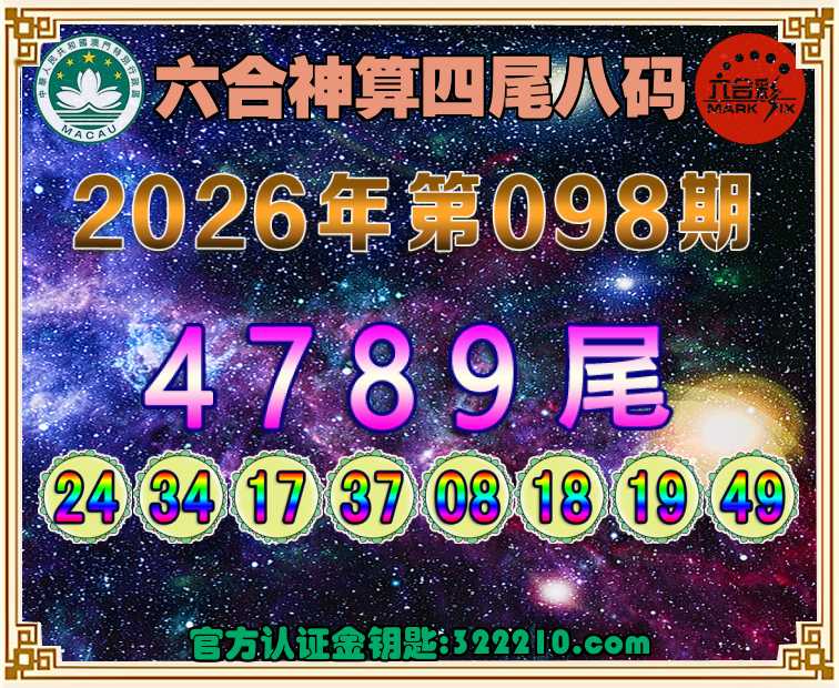 098期:〖六合神算〗 👉四尾八码👉【4789尾】开:17