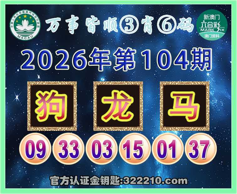 104期:『万事皆顺』 🏆③肖⑥码🏆【狗龙】开:马01