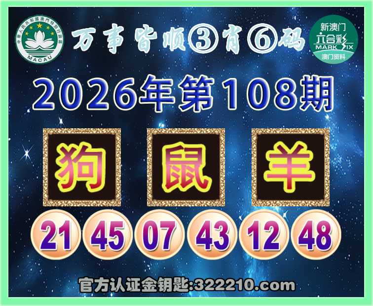 108期:『万事皆顺』 🏆③肖⑥码🏆【鼠羊】开:狗45