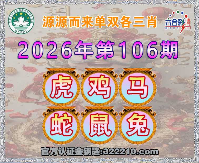 106期:『源源而来』 🥽单双各三肖🥽【虎..马.蛇.鼠.兔】开:鸡22